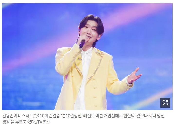 최근 김용빈의 인기가 날로 치솟고 있어요.