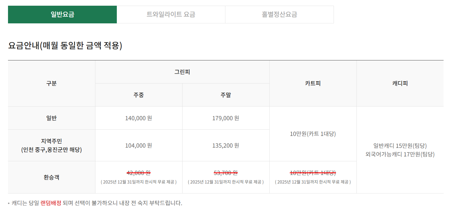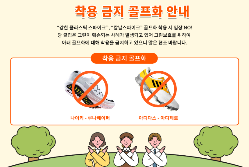 • 카트가 없는 워킹 플레이 방식, 운동화 또는 골프화 필수