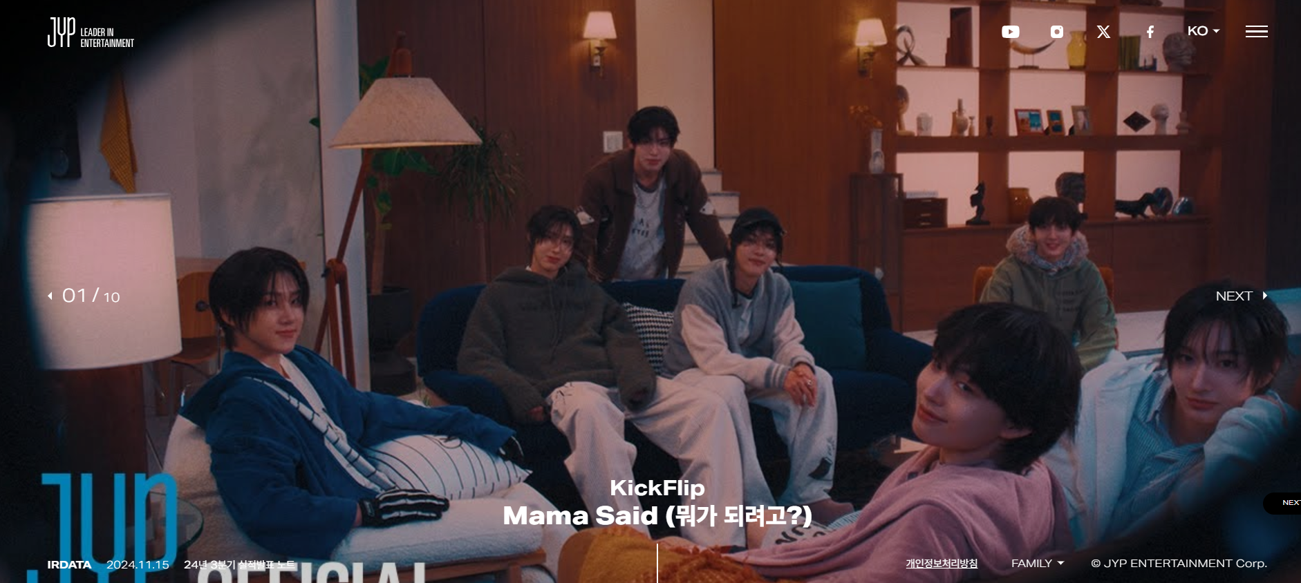 • JYP 엔터테인먼트는 인성을 중시하는 철학을 기반으로 자연스럽고 친근한 매력을 가진 아티스트를 배출합니다.