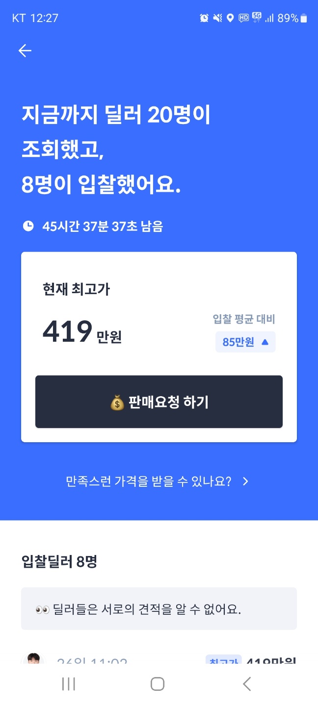 일주일정도 경매 한 결과 최종419만원을 불러주신 딜러를 선택하기로 결정.